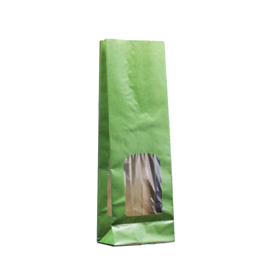 50pz Sacchetti verdi per alimenti in carta kraft con finestre 10x30cm