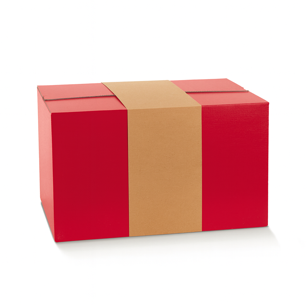 Scegli la Scatola Scotton Rossa con Fascia Avana per creare una presentazione memorabile e professionale dei tuoi regali enogastronomici natalizi.