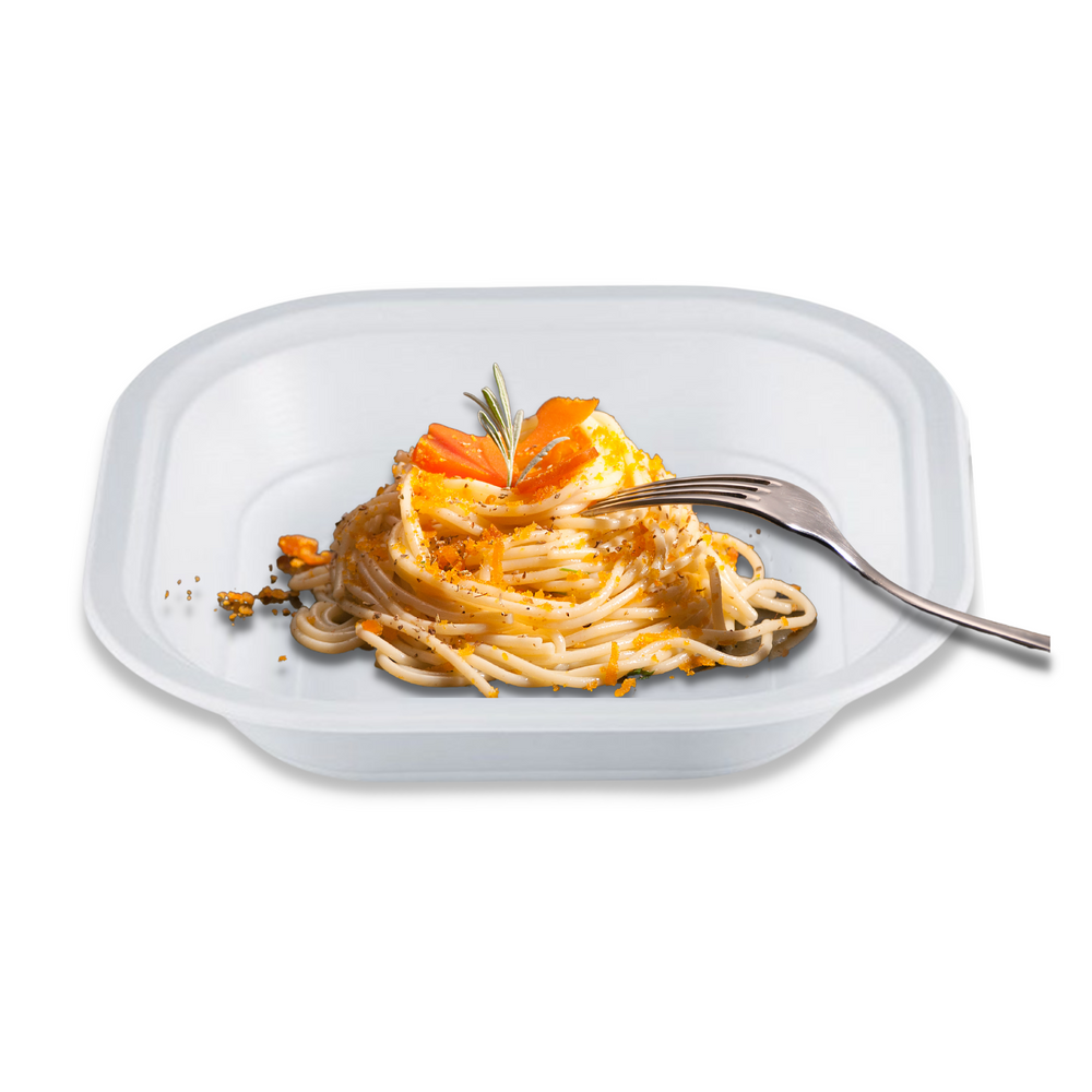 Piatti Isap Piuttosto fondo quadro in polipropilene adatti all'uso in microonde. Idonei al contatto con alimenti.