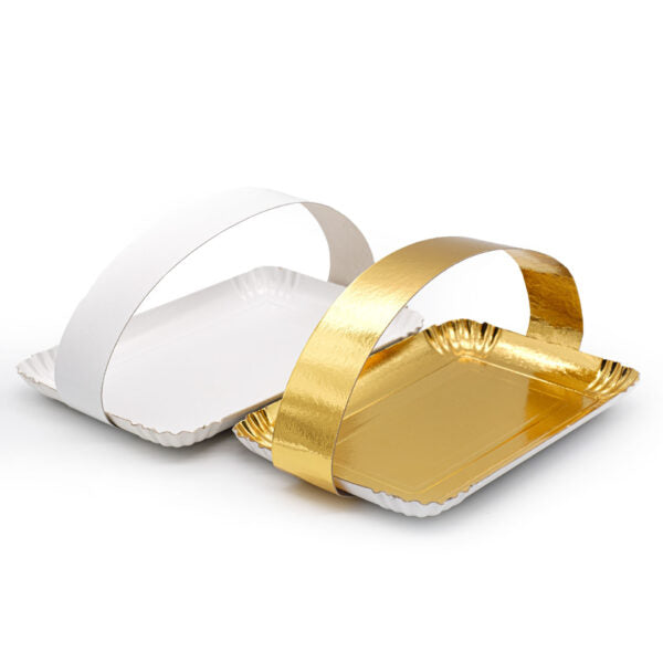 Strisce in cartone oro e bianche per alimenti utilizzate dalle pasticcerie e inserite all'interno del vassoio per rendere la confezione più gradevole ed evitare che il prodotto sia a contatto con l'involucro. Idoneo al contatto alimentare diretto.