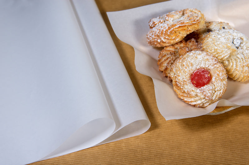 Carta kraft per alimenti, molto sottile e resistente dal colore bianco, molto utilizzata per confezionare o avvolgere alimenti secchi, pasta fresca, pane, panini, dolci secchi.
