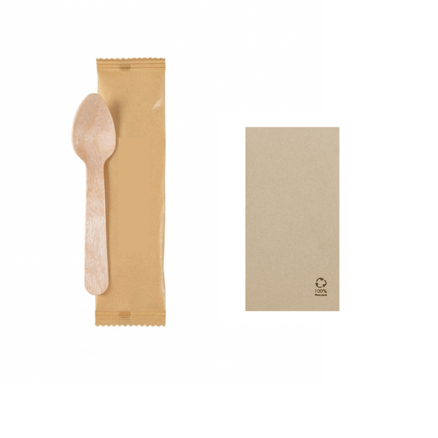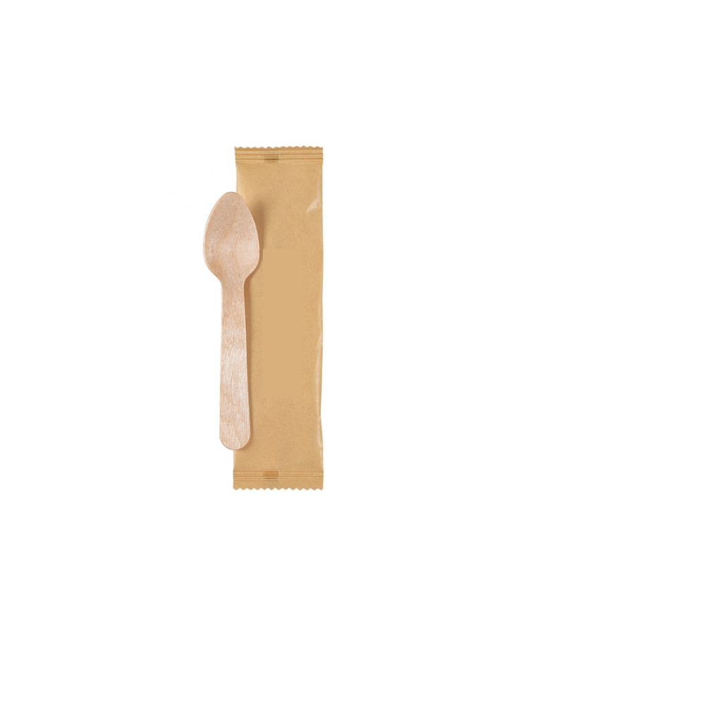 1200 Cucchiaini in Legno Monouso Confezionati Singolarmente in Carta Avana con Tovagliolo