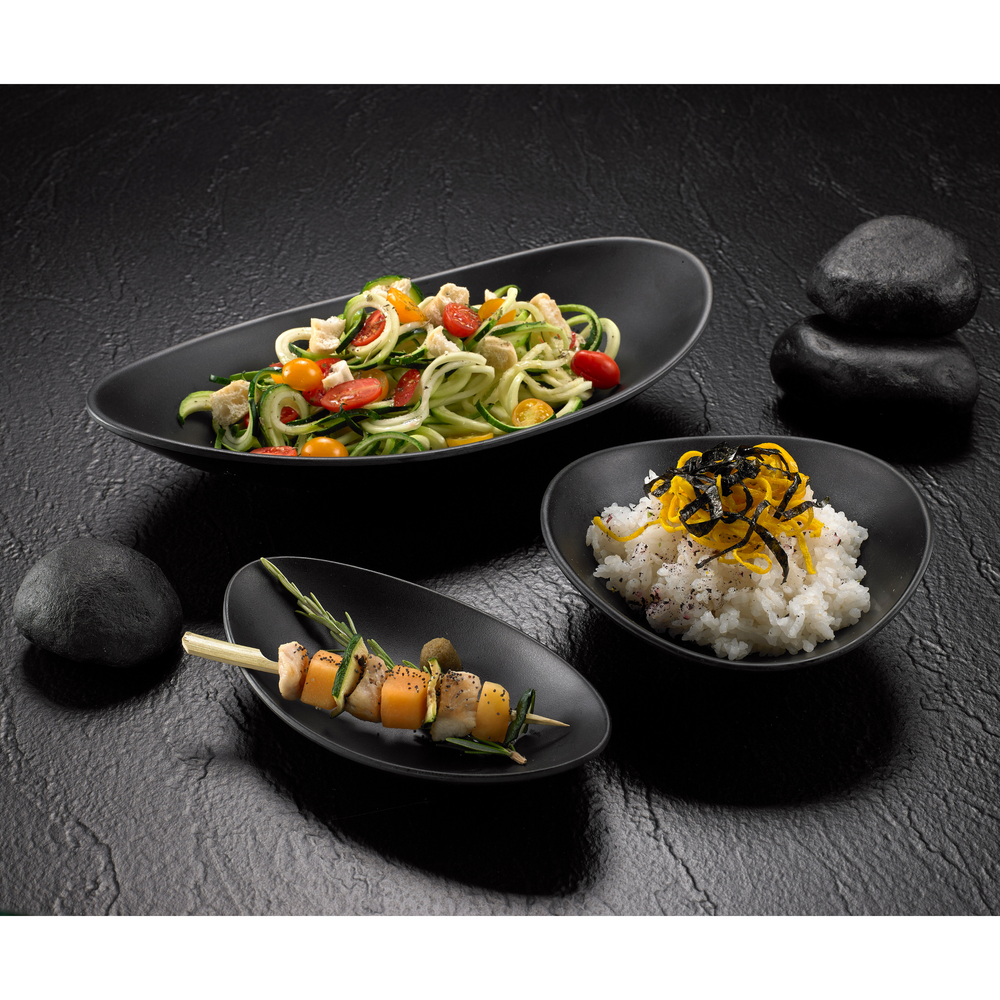 Coppetta ovale in melamina, elegante e versatile, dal grande impatto estetico, ideale nella ristorazione professionale per dare un tocco originale e raffinato alla presentazione dei cibi.