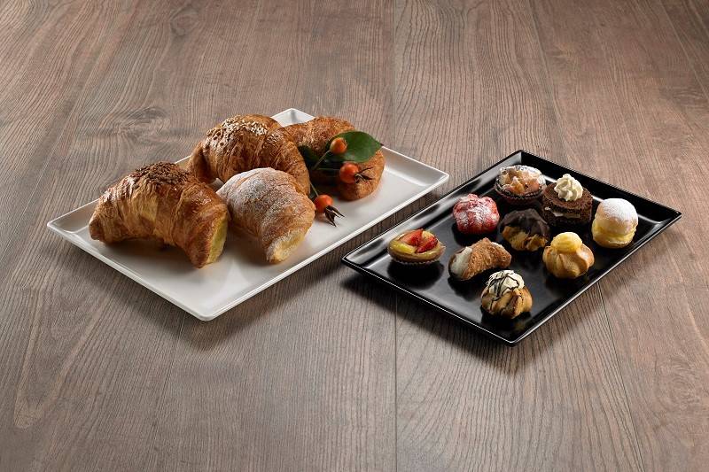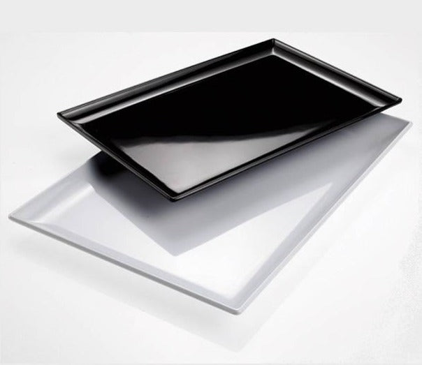 Vassoio rettangolare in melamina, perfetto per pasticcieria elegante e versatile, dal grande impatto estetico, ideale nella ristorazione professionale per dare un tocco originale e raffinato alla presentazione dei cibi.