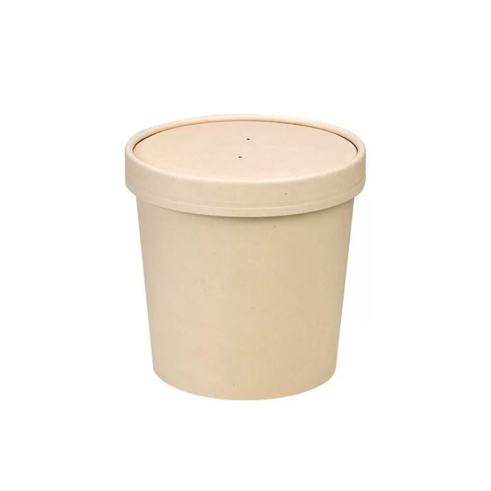 Insalatiera Kraft rotonda "Buckaty" da asporto in carta rivestita internamente con PLA.
