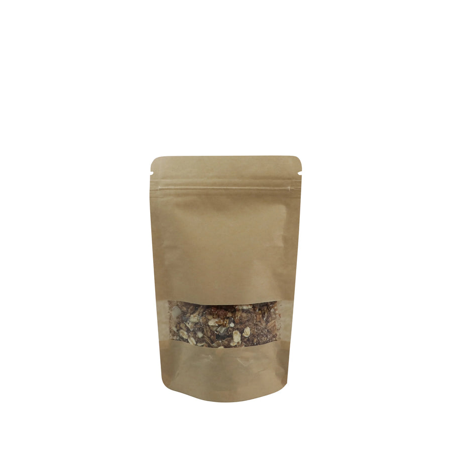 Sacchetti Doypack in Carta Kraft Avana con Finestra e Chiusura a Pressione – Confezione da 50 Pezzi