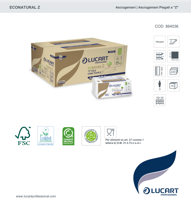 Scegli gli Asciugamani Avana Piegati a Z EcoNatural Z Lucart Professional per un'igiene sostenibile e responsabile, senza compromettere la qualità e il comfort