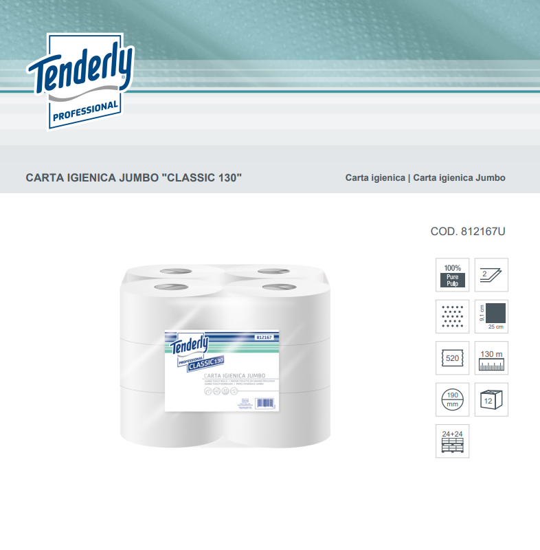 Carta Igienica Mini Jumbo Classic 130 Tenderly Professional 812167 - 12 Rotoli