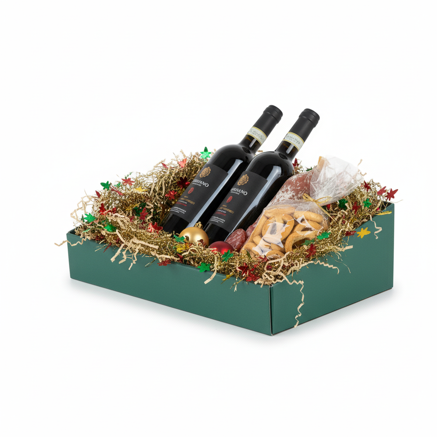 I cesti natalizi Scotton in cartone accoppiato sono una soluzione elegante e funzionale per confezionare regali enogastronomici di qualità. La loro particolarità è la forma studiata per esaltare la presentazione: il lato anteriore è più basso, mentre la parte posteriore presenta uno schienale rialzato, che permette di disporre i prodotti in modo ordinato e scenografico, rendendo la confezione regalo ancora più accattivante.