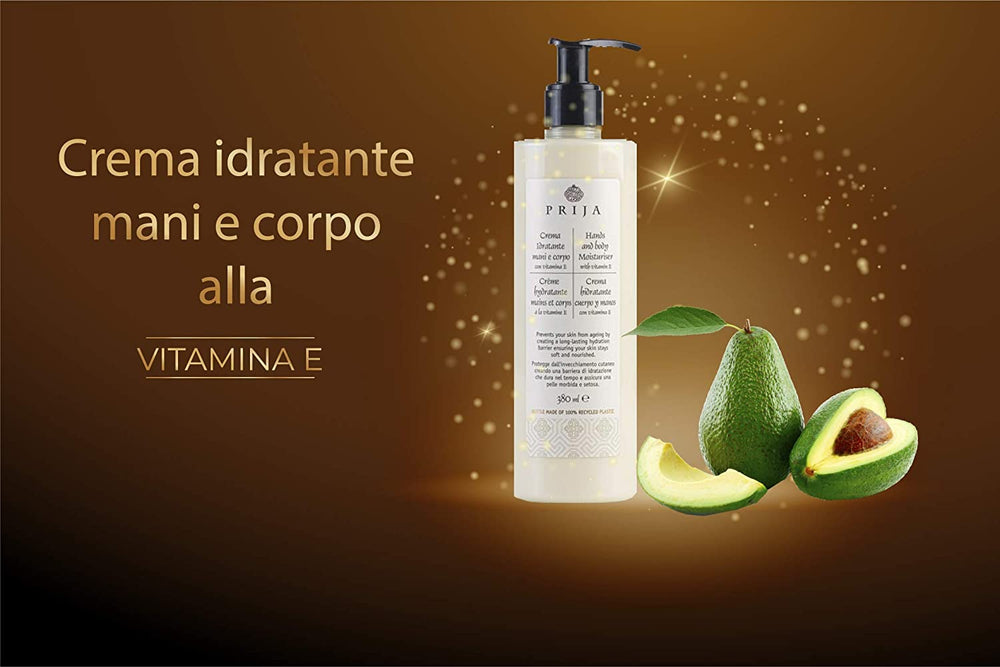 Dona alla tua pelle un trattamento di lusso con la nostra Crema Idratante Prija per mani e corpo arricchita con Vitamina E. Progettata per idratare in profondità e proteggere la pelle dagli agenti esterni, questa crema offre un'esperienza di benessere totale.