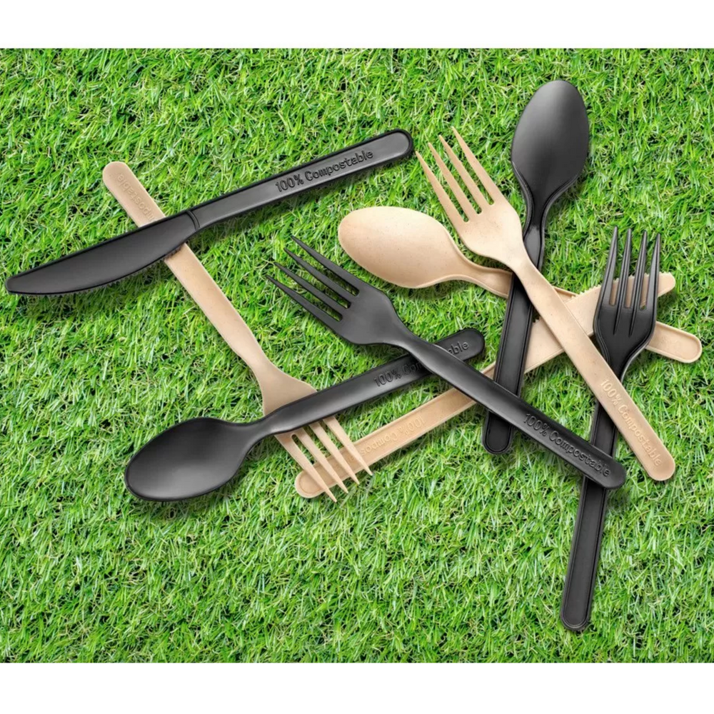 Cucchiai compostabili CPLA neri, posate biodegradabili eleganti, cucchiai neri 15cm ecologici, cucchiai monouso sostenibili, posate monouso per catering green, cucchiai in bioplastica compostabile, cucchiai take-away eco, cucchiai per dessert compostabili, cucchiai eleganti biodegradabili, posate ecologiche per eventi.
