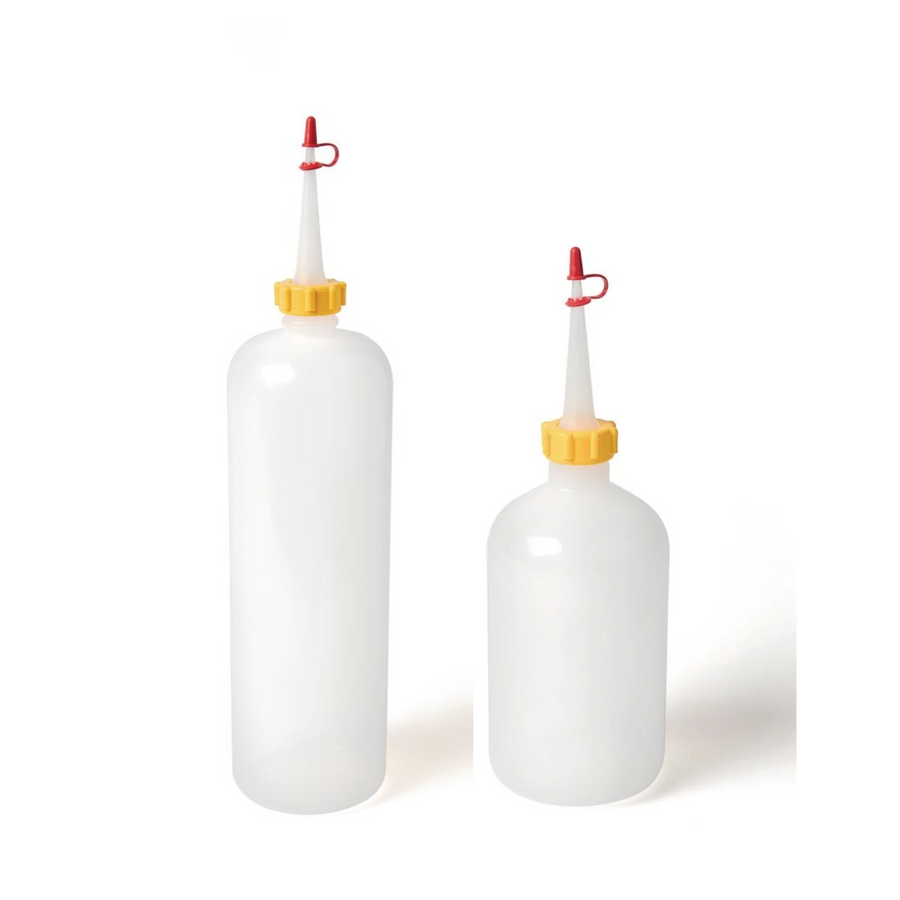 Realizzati in PE per uso alimentare, trasparente, questi flaconi dosatori, biberon sono perfetti per la dosatura di salse, emulsioni, decori dei vostri piatti.