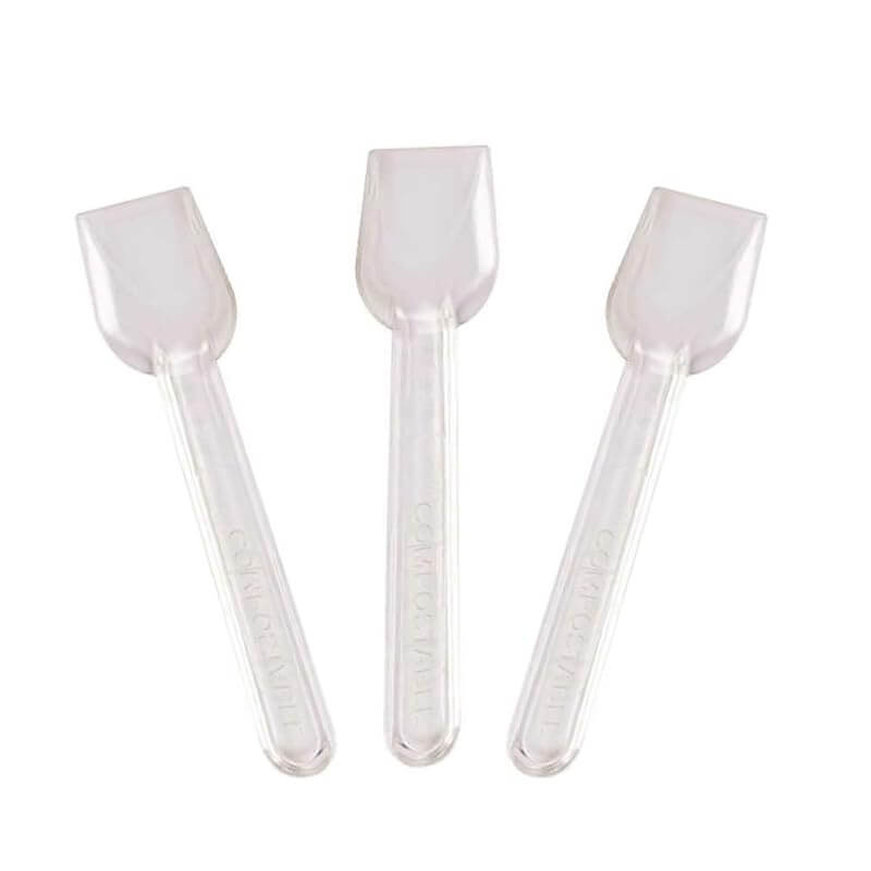 Palette gelato PLA biocompostabile, palette trasparenti biodegradabili, palette monouso in PLA 10cm, posate compostabili per gelaterie, palette PLA per dessert freddi, palette per degustazione sostenibili, palette gelato ecologiche trasparenti, palette per mousse in PLA, palette compostabili da 1kg, palette gelato monouso eco-friendly.