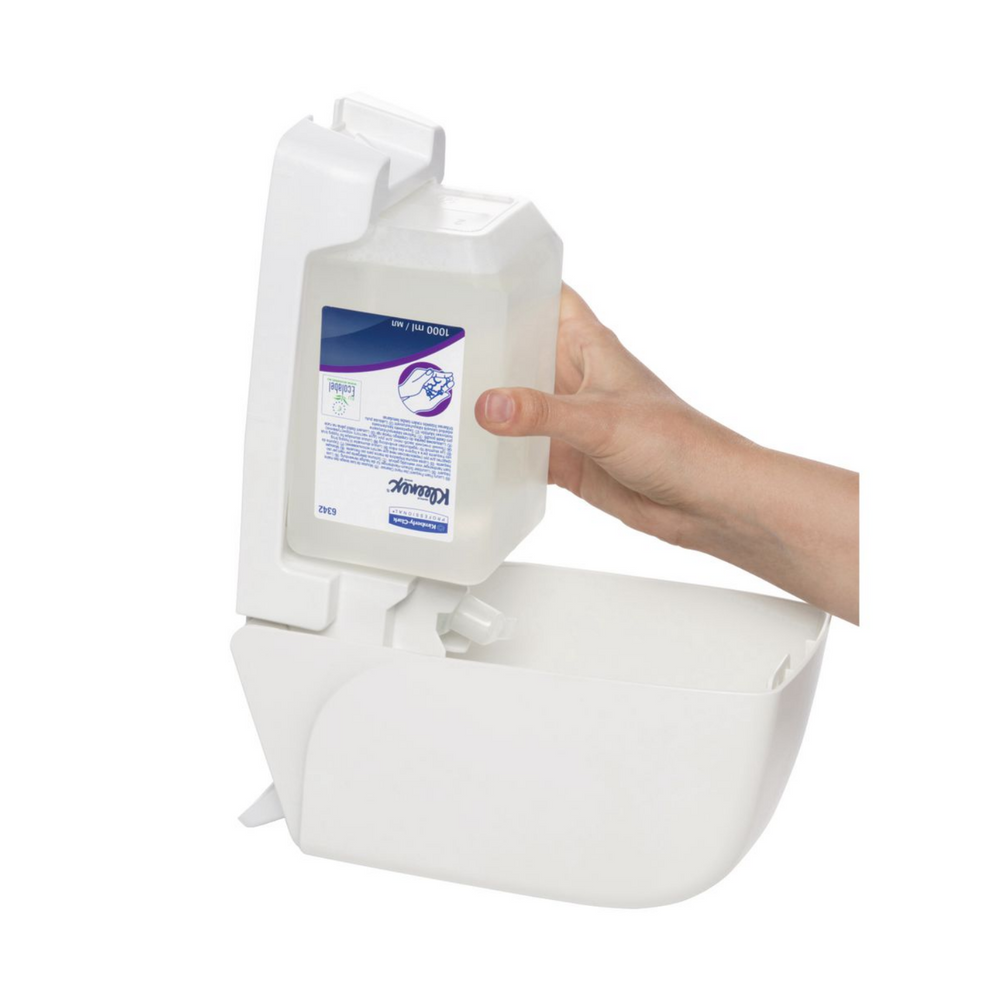 Questo sapone liquido per le mani Scott è adatto per l'uso quotidiano con il tuo sistema dispenser Kimberly-Clark Professional*. La cartuccia è dotata di un erogatore a pompa che consente di ridurre i costi distribuendo dosi controllate ad ogni utilizzo.