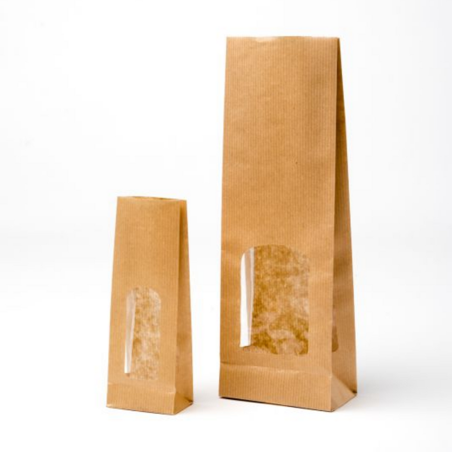 Sacchetti Kraft Avana con Finestre e Fondo Quadro: Conserva e Presenta i Tuoi Prodotti con Stile
