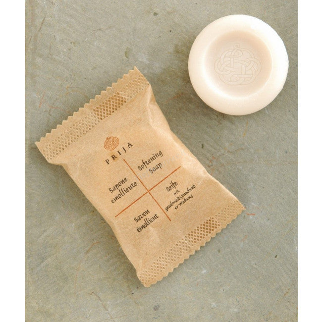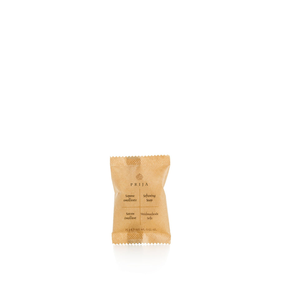 Saponetta vegetale da 15 gr in flow pack della linea di cortesia Prija.