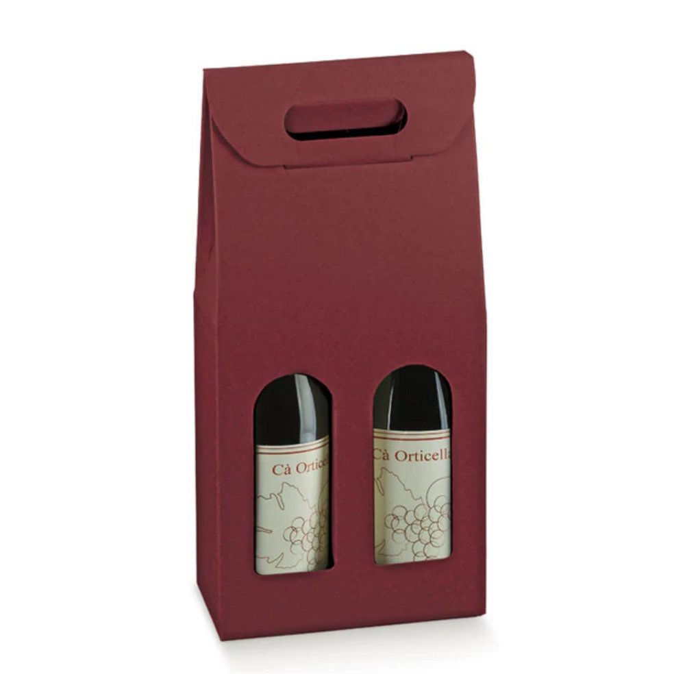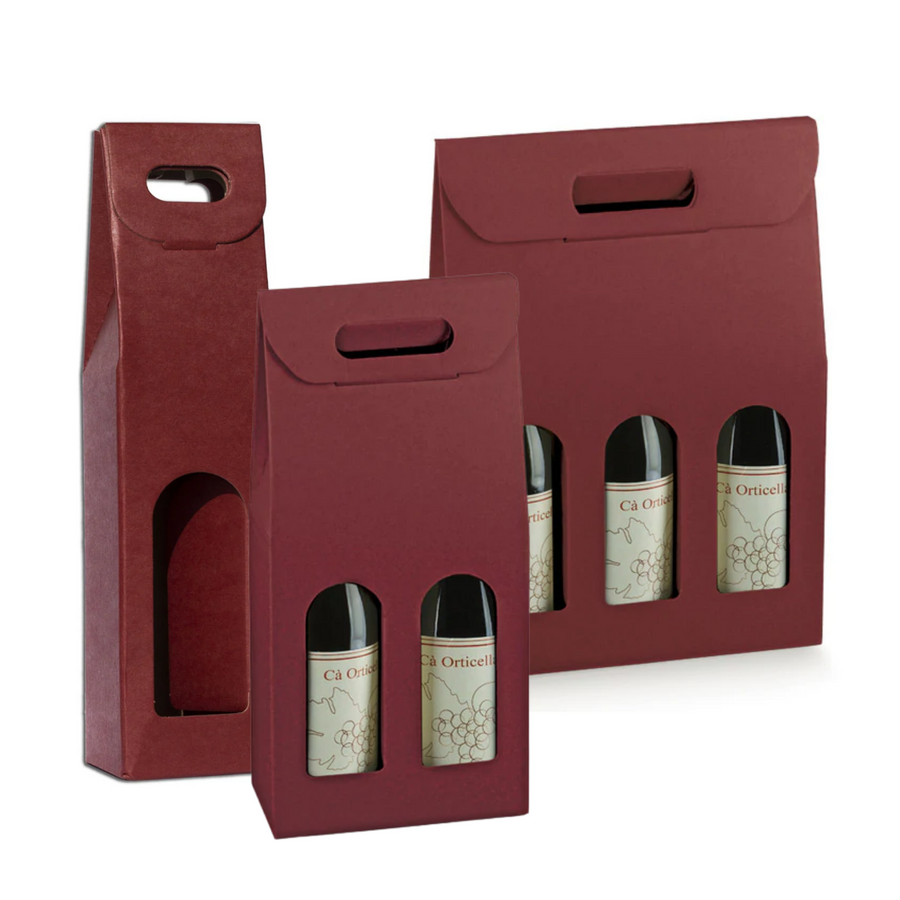 Scatola Portabottiglie Scotton in Cartoncino Bordeaux con Maniglia – Per 1, 2 o 3 Bottiglie