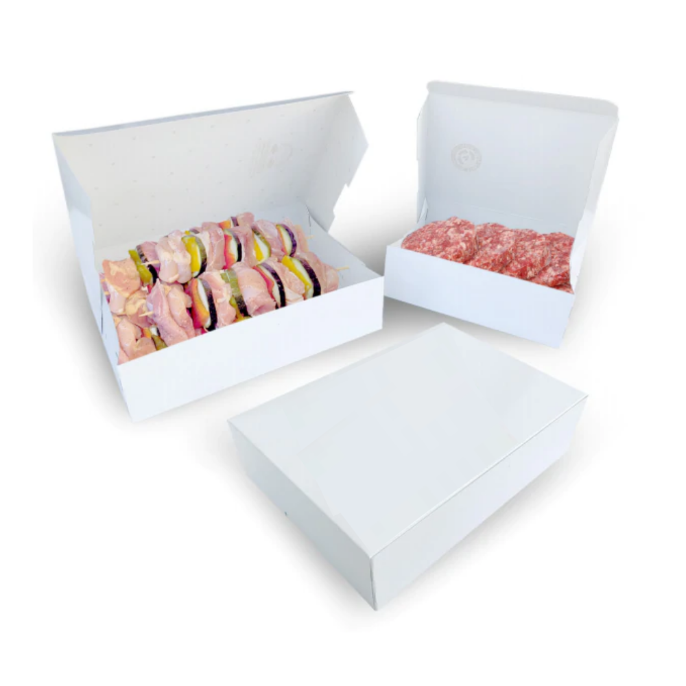 Le Scatole Scrigno bianche per take-away sono la soluzione ideale per il trasporto igienico e sicuro di alimenti pronti, perfette per panifici, pasticcerie, bistrot, ristoranti e pizzerie. Grazie al design modello francese, con esterno plastificato lucido bianco, queste scatole garantiscono eleganza, praticità e resistenza per il tuo servizio di asporto e delivery.