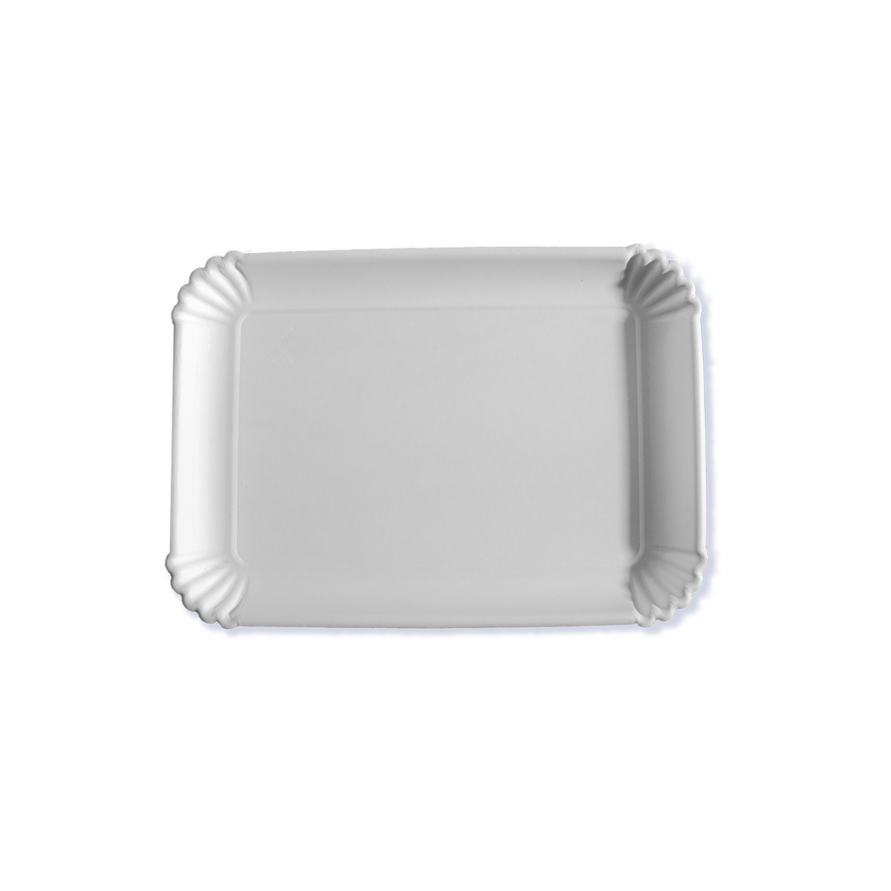 Vassoi in cartone bianchi per alimenti disponibili in varie misure.