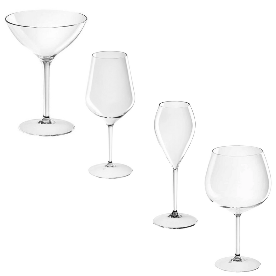 - Versatilità Assoluta: Grazie alla loro disponibilità in varie forme e dimensioni, i nostri bicchieri in policarbonato sono perfetti per qualsiasi bevanda, che si tratti di cocktail raffinati, vini pregiati o semplice acqua fresca.